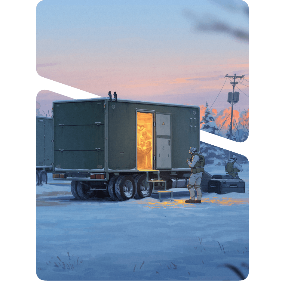 Combat-proven towable infrastructure for crisis areas and the frontline, providing trauma care, command, drone manufacturing, and battlefield infrastructure. Battlefield-proven in Ukraine and scaling across Europe.